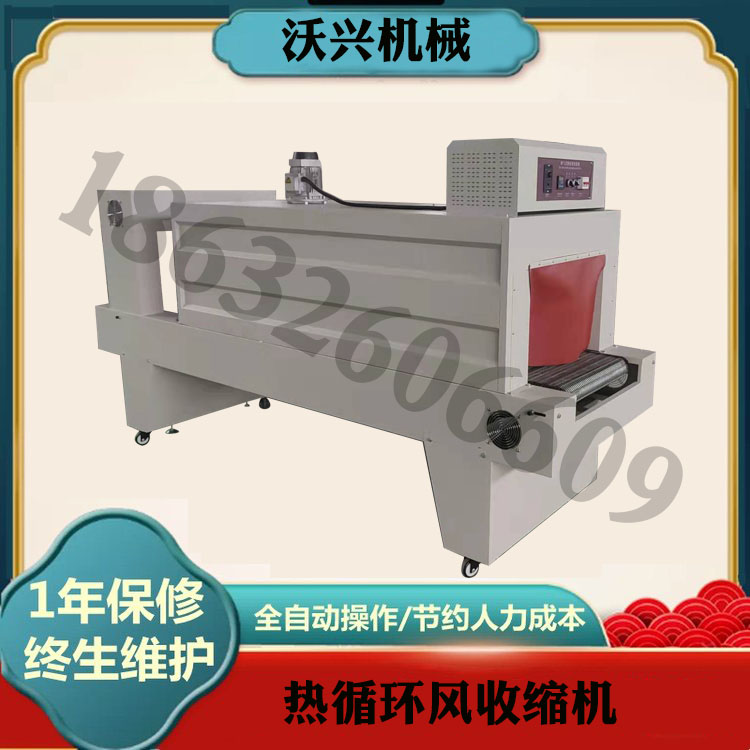 2、內循環風收縮機收縮后的物品具有一定的防污和抗撞擊能力。市面上不同飲料企業對飲料封裝瓶(罐)要求不同,有6瓶、12瓶、24瓶等要求,因此要求套膜封切機和熱收縮機能適應市場要求。