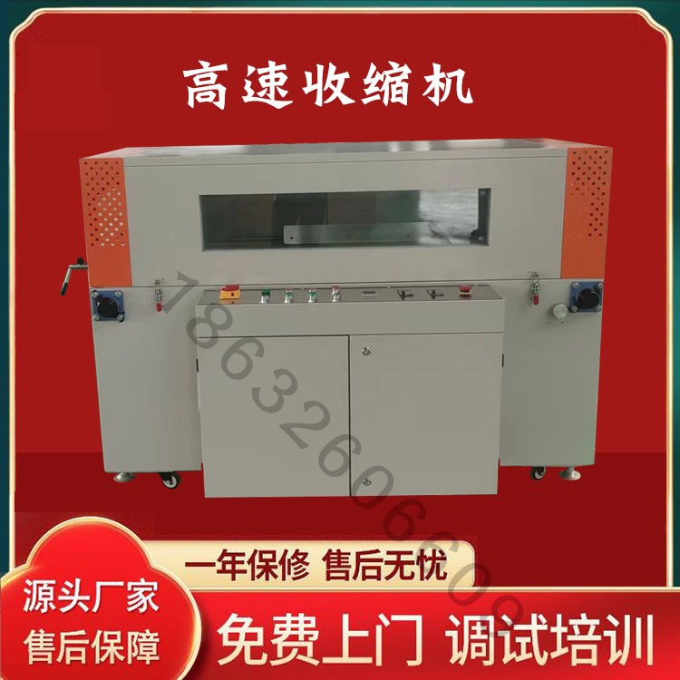 高速套膜塑封機具有采用遠紅外線直接加熱;設備體型小巧,預熱時間短、省電;電子無級變速調溫;收縮不影響包裝物品的品質而能收縮包裝好;適用于規則或不規則物品的包裝等五大優點。